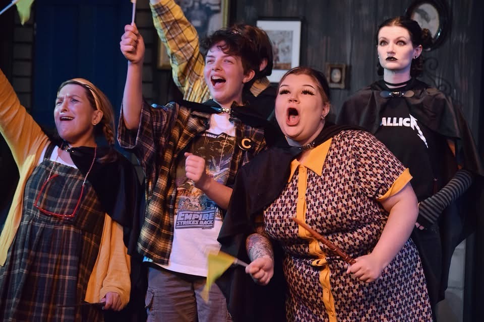 In a satire of a popular book and movie series, members of the Puffs house at a certain school of magic are entertaining McKeesport Little Theater audiences with stories of their trials and triumphs. (Submitted photo courtesy McKeesport Little Theater)